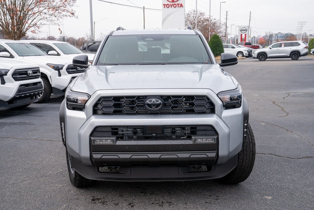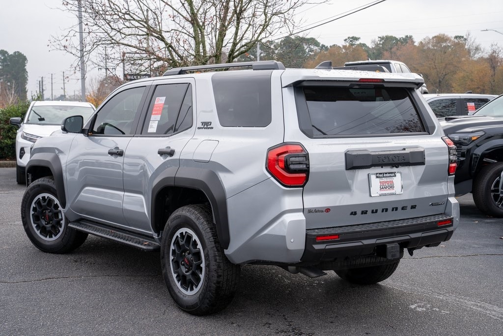 • Black honeycomb-style grille, mirror caps, door handles, and overfenders color-keyed rear spoiler black 'TRD OFF ROAD' and '4RUNNER' badges
