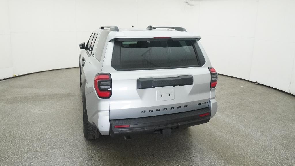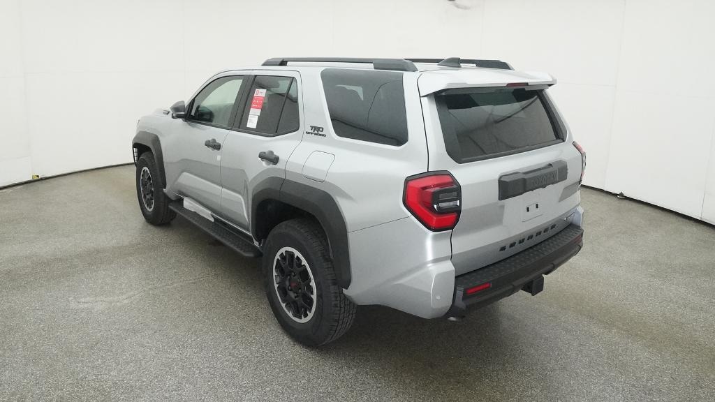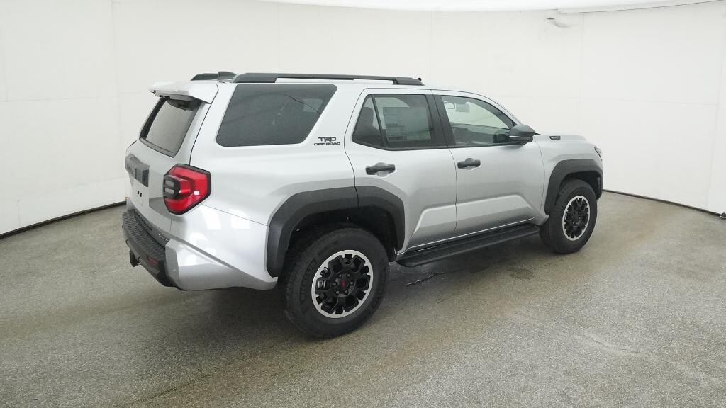 - Black honeycomb-style grille, mirror caps, door handles, and overfenders color-keyed rear spoiler black 'TRD OFF ROAD' and '4RUNNER' badges