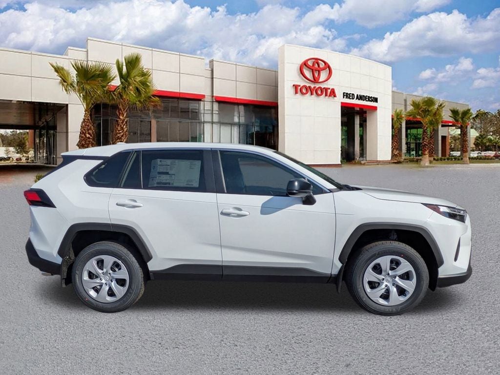 2025 Toyota RAV4 LE Ice Cap This quality vehicle qualifies for our " Fred Anderson Family Plan" which includes our PEACE OF MIND 3-DAY GUARANTEE*LIFE TIME CAR WASHES*SERVICE LOANERS*LIFE TIME OIL CHANGES and MUCH MORE! Be sure to ask our sales associate about all the great benefits of doing business with us. ============> Many Vehicles come with Great options like -->Driver Assist Package Bird'sEye View Camera1 with Perimeter Scan, Intelligent Clearance Sonar with Rear Cross-Traffic Braking (RCTB) Adaptive Headlights LED headlights with level control and auto on/off feature, Navigation, JBL®6w/Clari-Fi and EntuneTM 3.0 App Suite, compatible wireless smartphone charging, Power tilt/slide moonroof Full-Speed Range Dynamic Radar Cruise Control (DRCC), Leather-trimmed multi-stage heated front seats , EntuneTM 3.04 Audio Plus with App Suite 8-in. Touchscreen, auxiliary port, USB media port,two USB charge ports, advanced voice recognition, hands-free phone capability and music streaming via Bluetooth®wireless technology, Scout® GPS Link compatible ,Eyes Free,Apple CarPlay SiriusXM® Satellite Radio Wi-Fi Connect ,Smart Key front doors and trunk with Push Button Start, remote keyless entry system and remote illuminated entry. Toyota Safety SenseTM P (TSS-P), Pre-Collision System with Pedestrian Detection (PCS w/PD), Lane Departure Alert with Steering Assist (LDA w/SA),Automatic High Beams (AHB) and Full-Speed Range Dynamic Radar Cruise,Control (DRCC)S, Blind Spot Monitor (BSM) with Rear Cross-Traffic Alert (RCTA) AWD, Black Fabric Cloth.
