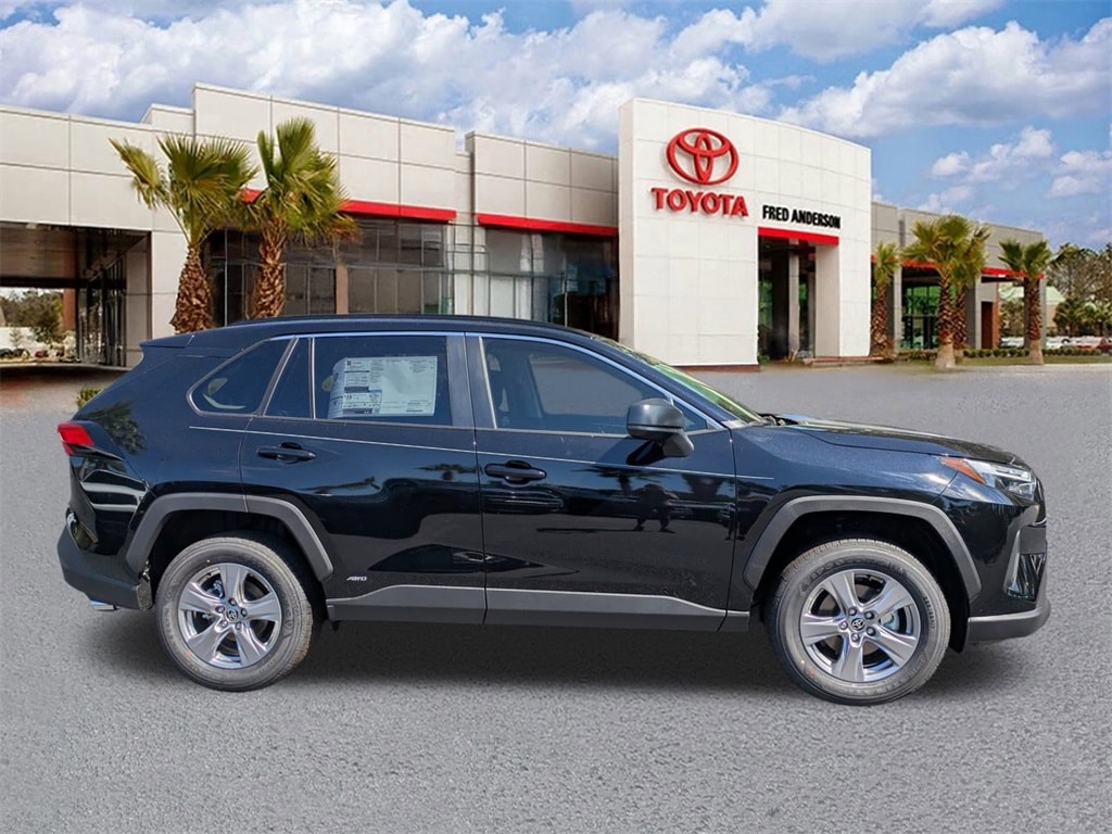 2025 Toyota RAV4 Hybrid LE Midnight Black Met This quality vehicle qualifies for our " Fred Anderson Family Plan" which includes our PEACE OF MIND 3-DAY GUARANTEE*LIFE TIME CAR WASHES*SERVICE LOANERS*LIFE TIME OIL CHANGES and MUCH MORE! Be sure to ask our sales associate about all the great benefits of doing business with us. ============> Many Vehicles come with Great options like -->Driver Assist Package Bird'sEye View Camera1 with Perimeter Scan, Intelligent Clearance Sonar with Rear Cross-Traffic Braking (RCTB) Adaptive Headlights LED headlights with level control and auto on/off feature, Navigation, JBL®6w/Clari-Fi and EntuneTM 3.0 App Suite, compatible wireless smartphone charging, Power tilt/slide moonroof Full-Speed Range Dynamic Radar Cruise Control (DRCC), Leather-trimmed multi-stage heated front seats , EntuneTM 3.04 Audio Plus with App Suite 8-in. Touchscreen, auxiliary port, USB media port,two USB charge ports, advanced voice recognition, hands-free phone capability and music streaming via Bluetooth®wireless technology, Scout® GPS Link compatible ,Eyes Free,Apple CarPlay SiriusXM® Satellite Radio Wi-Fi Connect ,Smart Key front doors and trunk with Push Button Start, remote keyless entry system and remote illuminated entry. Toyota Safety SenseTM P (TSS-P), Pre-Collision System with Pedestrian Detection (PCS w/PD), Lane Departure Alert with Steering Assist (LDA w/SA),Automatic High Beams (AHB) and Full-Speed Range Dynamic Radar Cruise,Control (DRCC)S, Blind Spot Monitor (BSM) with Rear Cross-Traffic Alert (RCTA) 2.5L 4-Cylinder.