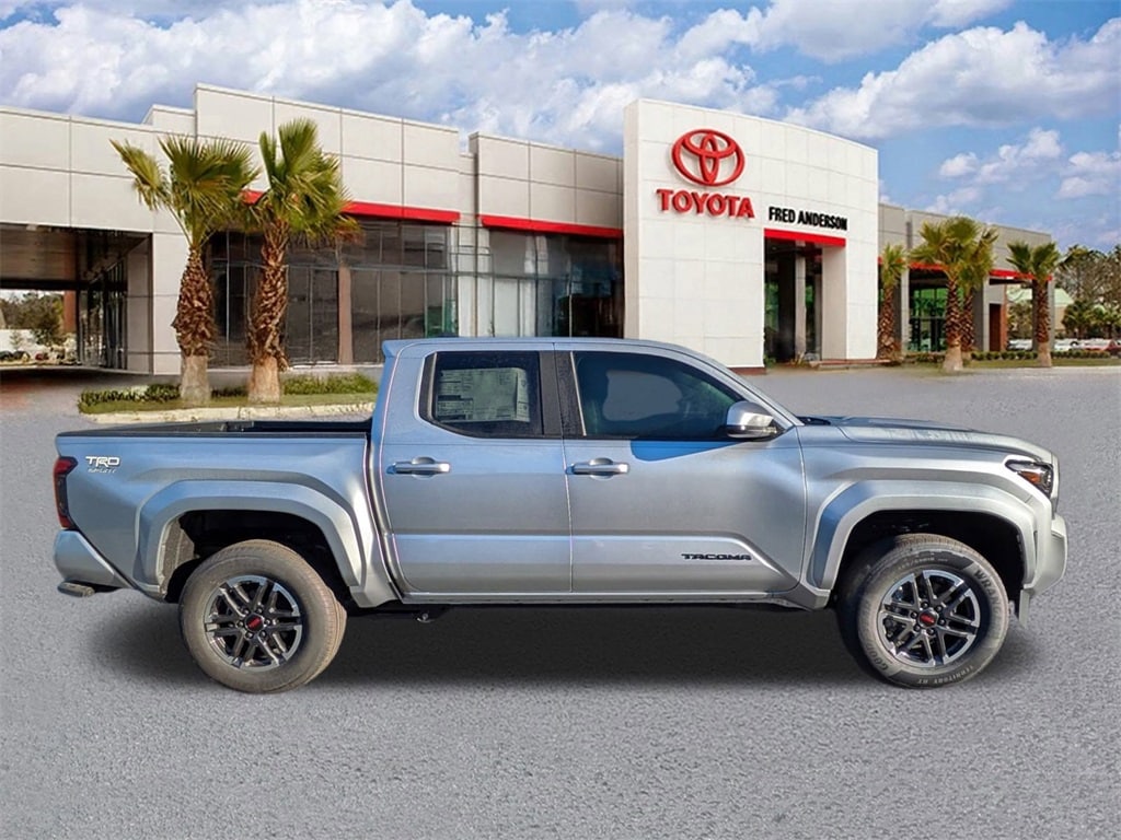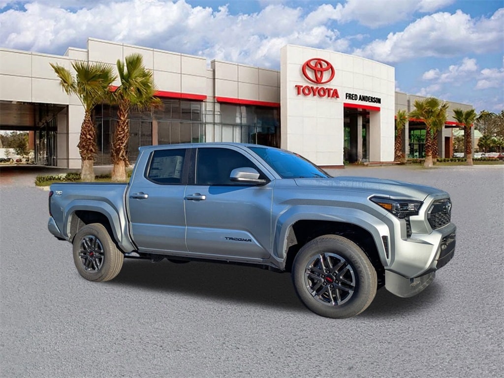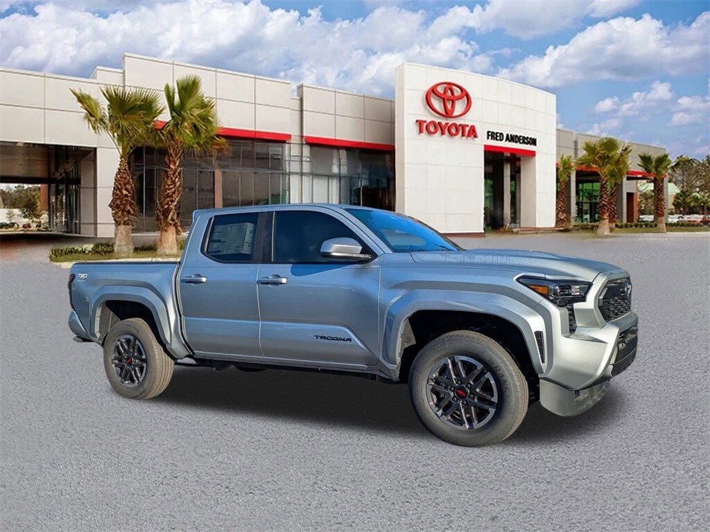 2025 Toyota Tacoma TRD Sport Celestial Silver M This quality vehicle qualifies for our " Fred Anderson Family Plan" which includes our PEACE OF MIND 3-DAY GUARANTEE*LIFE TIME CAR WASHES*SERVICE LOANERS*LIFE TIME OIL CHANGES and MUCH MORE! Be sure to ask our sales associate about all the great benefits of doing business with us. ============> Many Vehicles come with Great options like -->Driver Assist Package Bird'sEye View Camera1 with Perimeter Scan, Intelligent Clearance Sonar with Rear Cross-Traffic Braking (RCTB) Adaptive Headlights LED headlights with level control and auto on/off feature, Navigation, JBL®6w/Clari-Fi and EntuneTM 3.0 App Suite, compatible wireless smartphone charging, Power tilt/slide moonroof Full-Speed Range Dynamic Radar Cruise Control (DRCC), Leather-trimmed multi-stage heated front seats , EntuneTM 3.04 Audio Plus with App Suite 8-in. Touchscreen, auxiliary port, USB media port,two USB charge ports, advanced voice recognition, hands-free phone capability and music streaming via Bluetooth®wireless technology, Scout® GPS Link compatible ,Eyes Free,Apple CarPlay SiriusXM® Satellite Radio Wi-Fi Connect ,Smart Key front doors and trunk with Push Button Start, remote keyless entry system and remote illuminated entry. Toyota Safety SenseTM P (TSS-P), Pre-Collision System with Pedestrian Detection (PCS w/PD), Lane Departure Alert with Steering Assist (LDA w/SA),Automatic High Beams (AHB) and Full-Speed Range Dynamic Radar Cruise,Control (DRCC)S, Blind Spot Monitor (BSM) with Rear Cross-Traffic Alert (RCTA)