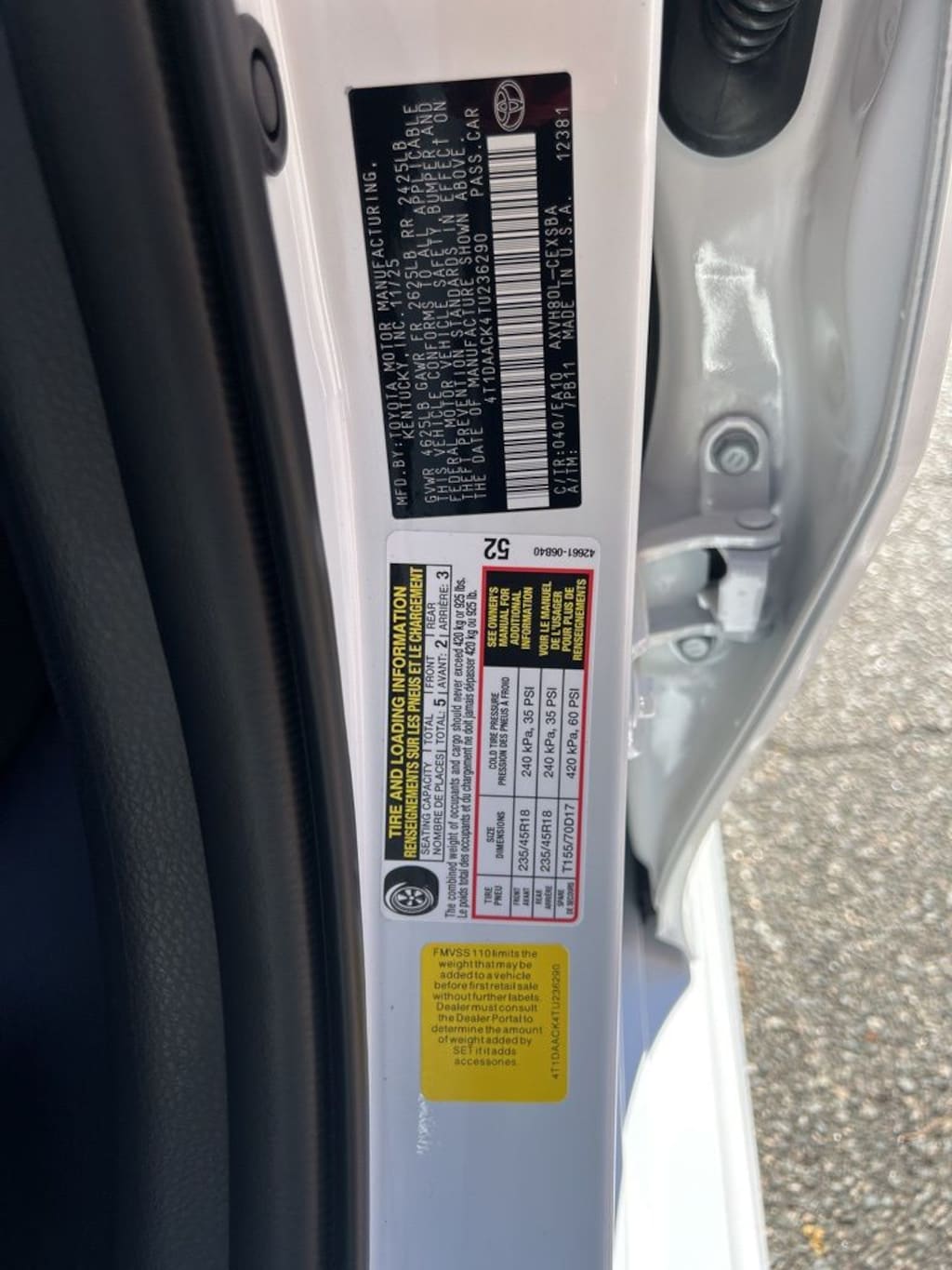 • Toyota Safety Sense 3.0 (TSS 3.0) Pre-Collision System with Pedestrian Detection (PCS w/PD), Full-Speed Range Dynamic Radar Cruise Control (DRCC), Lane Departure Alert with Steering Assist (LDA w/SA), Lane Tracing Assist (LTA), Road Sign Assist (RSA), Automatic High Beams (AHB), Proactive Driving Assist (PDA)