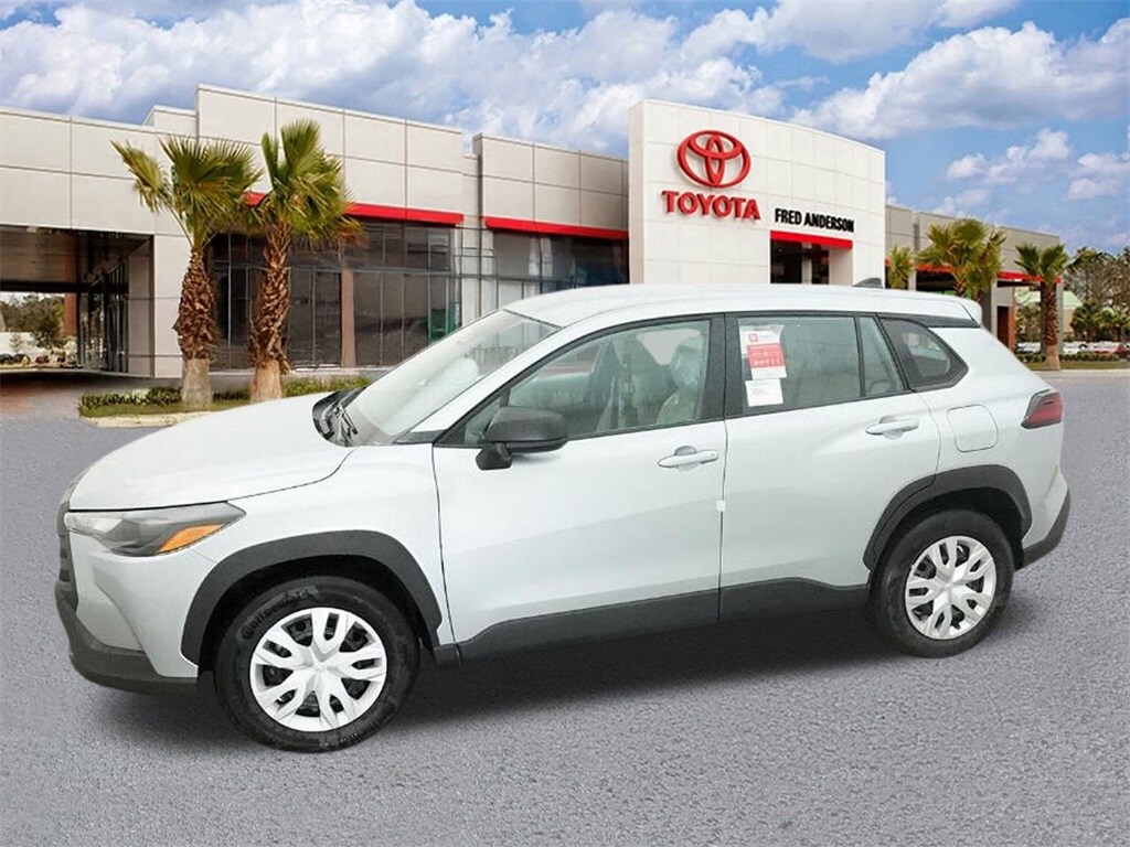 Recent Arrival! 2026 Toyota Corolla Cross L Sonic Silver This quality vehicle qualifies for our " Fred Anderson Family Plan" which includes our PEACE OF MIND 3-DAY GUARANTEE*LIFE TIME CAR WASHES*SERVICE LOANERS*LIFE TIME OIL CHANGES and MUCH MORE! Be sure to ask our sales associate about all the great benefits of doing business with us. ============> Many Vehicles come with Great options like -->Driver Assist Package Bird'sEye View Camera1 with Perimeter Scan, Intelligent Clearance Sonar with Rear Cross-Traffic Braking (RCTB) Adaptive Headlights LED headlights with level control and auto on/off feature, Navigation, JBL®6w/Clari-Fi and EntuneTM 3.0 App Suite, compatible wireless smartphone charging, Power tilt/slide moonroof Full-Speed Range Dynamic Radar Cruise Control (DRCC), Leather-trimmed multi-stage heated front seats , EntuneTM 3.04 Audio Plus with App Suite 8-in. Touchscreen, auxiliary port, USB media port,two USB charge ports, advanced voice recognition, hands-free phone capability and music streaming via Bluetooth®wireless technology, Scout® GPS Link compatible ,Eyes Free,Apple CarPlay SiriusXM® Satellite Radio Wi-Fi Connect ,Smart Key front doors and trunk with Push Button Start, remote keyless entry system and remote illuminated entry. Toyota Safety SenseTM P (TSS-P), Pre-Collision System with Pedestrian Detection (PCS w/PD), Lane Departure Alert with Steering Assist (LDA w/SA),Automatic High Beams (AHB) and Full-Speed Range Dynamic Radar Cruise,Control (DRCC)S, Blind Spot Monitor (BSM) with Rear Cross-Traffic Alert (RCTA)