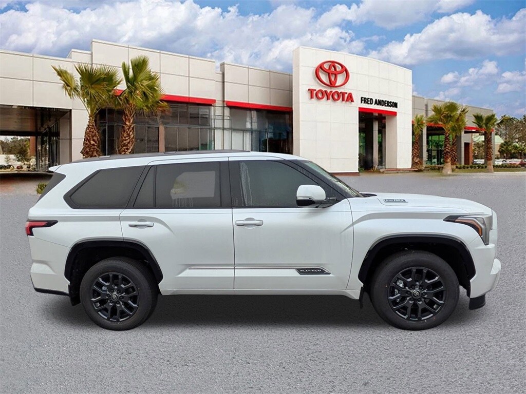 Recent Arrival! 2026 Toyota Sequoia Platinum Wind Chill Pearl This quality vehicle qualifies for our " Fred Anderson Family Plan" which includes our PEACE OF MIND 3-DAY GUARANTEE*LIFE TIME CAR WASHES*SERVICE LOANERS*LIFE TIME OIL CHANGES and MUCH MORE! Be sure to ask our sales associate about all the great benefits of doing business with us. ============> Many Vehicles come with Great options like -->Driver Assist Package Bird'sEye View Camera1 with Perimeter Scan, Intelligent Clearance Sonar with Rear Cross-Traffic Braking (RCTB) Adaptive Headlights LED headlights with level control and auto on/off feature, Navigation, JBL®6w/Clari-Fi and EntuneTM 3.0 App Suite, compatible wireless smartphone charging, Power tilt/slide moonroof Full-Speed Range Dynamic Radar Cruise Control (DRCC), Leather-trimmed multi-stage heated front seats , EntuneTM 3.04 Audio Plus with App Suite 8-in. Touchscreen, auxiliary port, USB media port,two USB charge ports, advanced voice recognition, hands-free phone capability and music streaming via Bluetooth®wireless technology, Scout® GPS Link compatible ,Eyes Free,Apple CarPlay SiriusXM® Satellite Radio Wi-Fi Connect ,Smart Key front doors and trunk with Push Button Start, remote keyless entry system and remote illuminated entry. Toyota Safety SenseTM P (TSS-P), Pre-Collision System with Pedestrian Detection (PCS w/PD), Lane Departure Alert with Steering Assist (LDA w/SA),Automatic High Beams (AHB) and Full-Speed Range Dynamic Radar Cruise,Control (DRCC)S, Blind Spot Monitor (BSM) with Rear Cross-Traffic Alert (RCTA) V6 Hybrid, 10-Speed Automatic, 4WD.