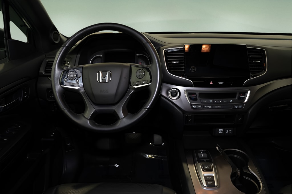 Check out all these great options 4-Wheel Disc Brakes, 4.334 Axle Ratio, 7 Speakers, A/V remote: CabinControl, ABS brakes, Air Conditioning, Alloy wheels, AM/FM radio: SiriusXM, Apple CarPlay/Android Auto, Auto High-beam Headlights, Auto-dimming Rear-View mirror, Automatic temperature control, Blind Spot Information (BSI) System warning, Brake assist, Bumpers: body-color, Delay-off headlights, Driver door bin, Driver vanity mirror, Driver's Seat Mounted Armrest, Dual front impact airbags, Dual front side impact airbags, Electronic Stability Control, Emergency communication system: HondaLink Assist, Exterior Parking Camera Rear, Forward collision: Collision Mitigation Braking System (CMBS) + FCW mitigation, Four wheel independent suspension, Front anti-roll bar, Front Bucket Seats, Front Center Armrest, Front dual zone A/C, Front fog lights, Front reading lights, Fully automatic headlights, Garage door transmitter: HomeLink, Heated door mirrors, Heated Front Bucket Seats, Heated front seats, Illuminated entry, Lane departure: Lane Keeping Assist System (LKAS) active, Leather-Trimmed Seats, Low tire pressure warning, Memory seat, Occupant sensing airbag, Outside temperature display, Overhead airbag, Overhead console, Panic alarm, Passenger door bin, Passenger seat mounted armrest, Passenger vanity mirror, Power door mirrors, Power driver seat, Power Liftgate, Power moonroof, Power passenger seat, Power steering, Power windows, Radio data system, Radio: 215-Watt Audio System w/7 Speakers, Rear air conditioning, Rear anti-roll bar, Rear reading lights, Rear seat center armrest, Rear window defroster, Rear window wiper, Remote keyless entry, Security system, Speed control, Speed-sensing steering, Split folding rear seat, Spoiler, Steering wheel mounted audio controls, Tachometer, Telescoping steering wheel, Tilt steering wheel, Traction control, Trip computer, Turn signal indicator mirrors, Variably intermittent wipers, and Wheels: 20" Split-Spoke Pewter Gray Alloy.