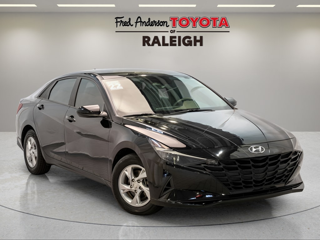 Alloy wheels / Premium Wheels, Bluetooth, Hands-Free, Star Safety System with Active Breaking Technologies, Keyless Entry, Backup Camera, We will buy your car and pay top dollar for it, even if you don't buy ours!!. Check out all these great options Option Group 01, Preferred Accessory Package (First Aid Kit), 15" x 6.0J Alloy Wheels, 4 Speakers, 4-Wheel Disc Brakes, ABS brakes, Air Conditioning, Alloy wheels, AM/FM radio, Apple CarPlay & Android Auto, Auto High-beam Headlights, Brake assist, Bumpers: body-color, Carpeted Floor Mats, Cloth Seat Trim, Delay-off headlights, Driver door bin, Driver vanity mirror, Dual front impact airbags, Dual front side impact airbags, EC Mirror w/o Blue Link, Electronic Stability Control, Exterior Parking Camera Rear, Front anti-roll bar, Front Bucket Seats, Front Center Armrest, Front reading lights, Front wheel independent suspension, Fully automatic headlights, Illuminated entry, Lane Departure Warning System, Low tire pressure warning, Occupant sensing airbag, Outside temperature display, Overhead airbag, Overhead console, Panic alarm, Passenger door bin, Passenger vanity mirror, Power door mirrors, Power steering, Power windows, Radio: AM/FM/HD Display Audio, Rear window defroster, Remote keyless entry, Reversible Cargo Tray, Security system, Speed control, Speed-sensing steering, Steering wheel mounted audio controls, Tachometer, Telescoping steering wheel, Tilt steering wheel, Traction control, Trip computer, Variably intermittent wipers, and Wheel LocksStop by and test drive today. Let us show you how affordable we can make it. Remember, we always give you more for your trade and we will buy your vehicle even if you don't buy one from us. See online @ www.FredAndersonToyota.com or see in person @ Fred Anderson Toyota 9101 Glenwood Ave. Raleigh NC, 27617. 2022 Hyundai Elantra SE FWD Phantom Black CVT