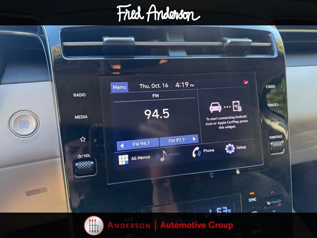 CARFAX One-Owner. Clean CARFAX. Priced below KBB Fair Purchase Price! Still Under Factory Powertrain Warranty!!, Still Under Factory Warranty!!, Only One Owner and Accident Free Carfax!!, Alloy wheels / Premium Wheels, Bluetooth, Hands-Free, Star Safety System with Active Breaking Technologies, Keyless Entry, Keyless Start, Backup Camera, We will buy your car and pay top dollar for it, even if you don't buy ours!!, USB Port. Odometer is 11790 miles below market average! Check out all these great options Option Group 01, 3.648 Axle Ratio, 4-Wheel Disc Brakes, 6 Speakers, ABS brakes, Air Conditioning, Alloy wheels, AM/FM radio: SiriusXM, Apple CarPlay & Android Auto, Auto High-beam Headlights, Automatic temperature control, Brake assist, Bumpers: body-color, Delay-off headlights, Driver door bin, Driver vanity mirror, Dual front impact airbags, Dual front side impact airbags, Electronic Stability Control, Emergency communication system: Blue Link Connected Car Service (3-year complimentary subscription), Exterior Parking Camera Rear, Four wheel independent suspension, Front anti-roll bar, Front Bucket Seats, Front Center Armrest, Front dual zone A/C, Front reading lights, Fully automatic headlights, Heated door mirrors, Heated Front Bucket Seats, Heated front seats, Illuminated entry, Low tire pressure warning, Occupant sensing airbag, Outside temperature display, Overhead airbag, Overhead console, Panic alarm, Passenger door bin, Passenger vanity mirror, Power door mirrors, Power driver seat, Power Liftgate, Power steering, Power windows, Radio data system, Radio: AM/FM/HD Audio System, Rear anti-roll bar, Rear seat center armrest, Rear side impact airbag, Rear window defroster, Rear window wiper, Remote keyless entry, Roof rack: rails only, Security system, Speed control, Split folding rear seat, Spoiler, Stain & Odor Resistant Cloth Seat Trim, Steering wheel mounted audio controls, Tachometer, Telescoping steering wheel, Tilt steering wheel, Traction control, Trip computer, Variably intermittent wipers, Wheels: 17" x 7.0J" Alloy, and Wheels: 19" x 7.5J" Machine-Face Finish AlloyStop by and test drive today. Let us show you how affordable we can make it. Remember, we always give you more for your trade and we will buy your vehicle even if you don't buy one from us. See online @ www.FredAndersonToyota.com or see in person @ Fred Anderson Toyota 9101 Glenwood Ave. Raleigh NC, 27617. Recent Arrival! 2024 Hyundai Tucson SEL FWD Shimmering Silver 8-Speed Automatic with SHIFTRONIC