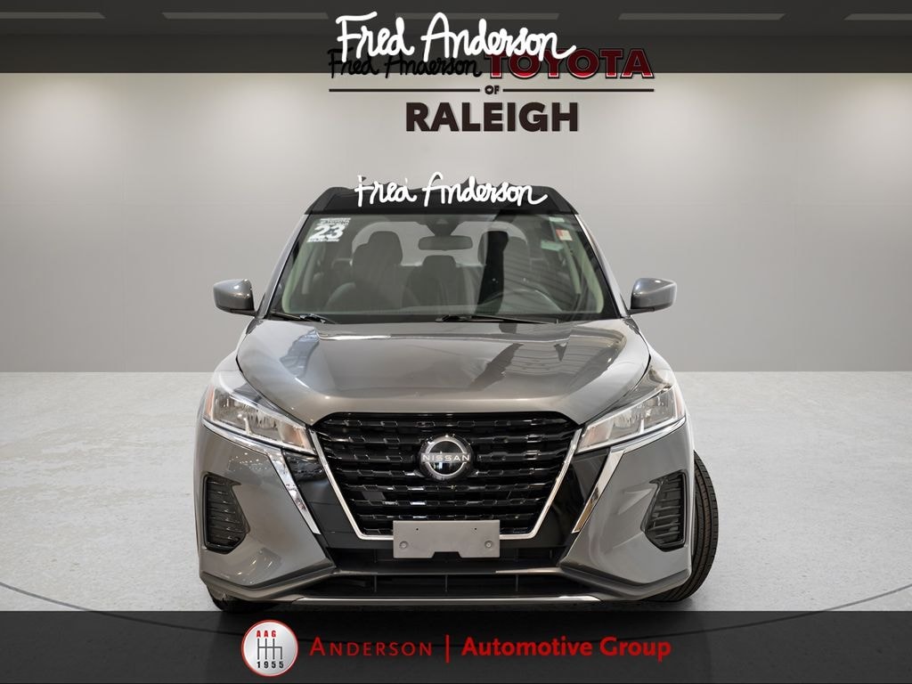 Clean CARFAX. Priced below KBB Fair Purchase Price! *Full Family Plan* INCLUDES OIL CHANGES FOR LIFE!, Still Under Factory Powertrain Warranty!!, Accident Free Carfax!!, Alloy wheels / Premium Wheels, Bluetooth, Hands-Free, Local Trade, Star Safety System with Active Breaking Technologies, Keyless Entry, Keyless Start, Backup Camera, We will buy your car and pay top dollar for it, even if you don't buy ours!!, USB Port. Check out all these great options 17" Alloy Wheels, 3.93 Axle Ratio, 4-Wheel Disc Brakes, 6 Speakers, ABS brakes, Air Conditioning, Alloy wheels, AM/FM radio: SiriusXM, Apple CarPlay/Android Auto, Auto High-beam Headlights, Blind Spot Warning, Brake assist, Bumpers: body-color, Carpeted Floor Mats w/Cargo Mat, Cloth Seat Trim, Driver door bin, Driver vanity mirror, Dual front impact airbags, Dual front side impact airbags, Electronic Stability Control, Front anti-roll bar, Front Bucket Seats, Front Center Armrest, Front reading lights, Front wheel independent suspension, Fully automatic headlights, Heated door mirrors, Illuminated entry, Knee airbag, Low tire pressure warning, Occupant sensing airbag, Outside temperature display, Overhead airbag, Panic alarm, Passenger door bin, Passenger vanity mirror, Power door mirrors, Power steering, Power windows, Radio data system, Radio: AM/FM Audio System, Rear Parking Sensors, Rear reading lights, Rear side impact airbag, Rear window defroster, Rear window wiper, Remote keyless entry, Speed control, Split folding rear seat, Sport steering wheel, Steering wheel mounted audio controls, Tachometer, Telescoping steering wheel, Tilt steering wheel, Traction control, Trip computer, and Variably intermittent wipersStop by and test drive today. Let us show you how affordable we can make it. Remember, we always give you more for your trade and we will buy your vehicle even if you don't buy one from us. See online @ www.FredAndersonToyota.com or see in person @ Fred Anderson Toyota 9101 Glenwood Ave. Raleigh NC, 27617. 2023 Nissan Kicks SV FWD Gun Metallic CVT with Xtronic