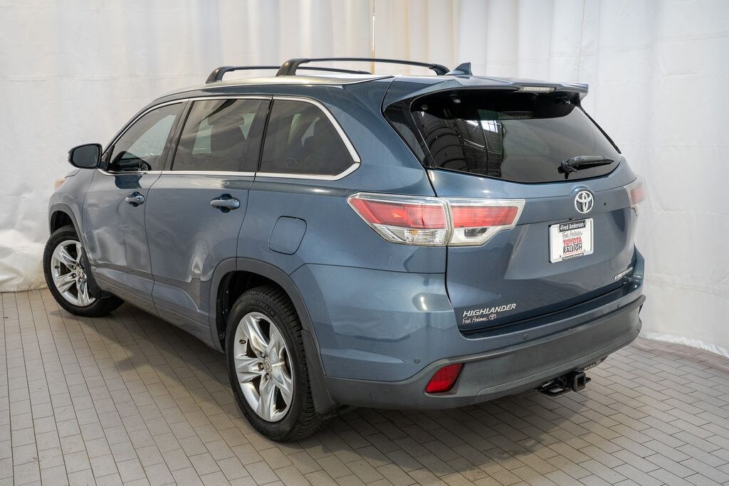 *Full Family Plan* INCLUDES OIL CHANGES FOR LIFE!, Navigation, Bought new here at Fred Anderson Toyota, Alloy wheels / Premium Wheels, Bluetooth, Hands-Free, Leather Seats, Local Trade, Star Safety System with Active Breaking Technologies, Keyless Entry, Keyless Start, Backup Camera, Sunroof / Panoramic Roof, We will buy your car and pay top dollar for it, even if you don't buy ours!!, USB Port, AWD, ABS brakes, Alloy wheels, Electronic Stability Control, Front dual zone A/C, Heated door mirrors, Heated front seats, Heated/Ventilated Front Bucket Seats, Illuminated entry, Low tire pressure warning, Navigation System, Power Liftgate, Power moonroof, Remote keyless entry, Traction control. Check out all these great options AWD, ABS brakes, Alloy wheels, Electronic Stability Control, Front dual zone A/C, Heated door mirrors, Heated front seats, Heated/Ventilated Front Bucket Seats, Illuminated entry, Low tire pressure warning, Navigation System, Power Liftgate, Power moonroof, Remote keyless entry, Traction control, 12 Speakers, 3rd row seats: split-bench, 4-Wheel Disc Brakes, 4.154 Axle Ratio, Air Conditioning, AM/FM radio: SiriusXM, Anti-whiplash front head restraints, Auto-dimming Rear-View mirror, Automatic temperature control, Brake assist, Bumpers: body-color, CD player, Delay-off headlights, Driver door bin, Driver vanity mirror, Dual front impact airbags, Dual front side impact airbags, Exterior Parking Camera Rear, Four wheel independent suspension, Front anti-roll bar, Front Bucket Seats, Front Center Armrest, Front fog lights, Front reading lights, Fully automatic headlights, Garage door transmitter, Knee airbag, Leather Shift Knob, Memory seat, Occupant sensing airbag, Outside temperature display, Overhead airbag, Overhead console, Panic alarm, Passenger door bin, Passenger vanity mirror, Perforated Leather Seat Material, Power door mirrors, Power driver seat, Power passenger seat, Power steering, Power windows, Radio: Entune Premium JBL Audio w/Nav & App Suite, Rear air conditioning, Rear anti-roll bar, Rear Parking Sensors, Rear reading lights, Rear window defroster, Rear window wiper, Reclining 3rd row seat, Roof rack: rails only, Security system, Speed control, Speed-sensing steering, Split folding rear seat, Spoiler, Steering wheel mounted audio controls, Tachometer, Telescoping steering wheel, Tilt steering wheel, Trip computer, Turn signal indicator mirrors, Variably intermittent wipers, Ventilated front seats, and Wheels: 19" 5-Spoke Chromtec AlloyStop by and test drive today. Let us show you how affordable we can make it. Remember, we always give you more for your trade and we will buy your vehicle even if you don't buy one from us. See online @ www.FredAndersonToyota.com or see in person @ Fred Anderson Toyota 9101 Glenwood Ave. Raleigh NC, 27617. 2015 Toyota Highlander Limited AWD Shoreline Blue Pearl 6-Speed Automatic Electronic with Overdrive