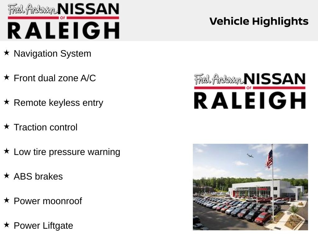 Recent Arrival! Clean CARFAX. CARFAX One-Owner. ABS brakes, Active Cruise Control, Alloy wheels, Electronic Stability Control, Front dual zone A/C, Heated door mirrors, Heated Front Bucket Seats, Heated front seats, Illuminated entry, Leather Seat Trim, Low tire pressure warning, Navigation System, Power Liftgate, Power moonroof, Remote keyless entry, Traction control.