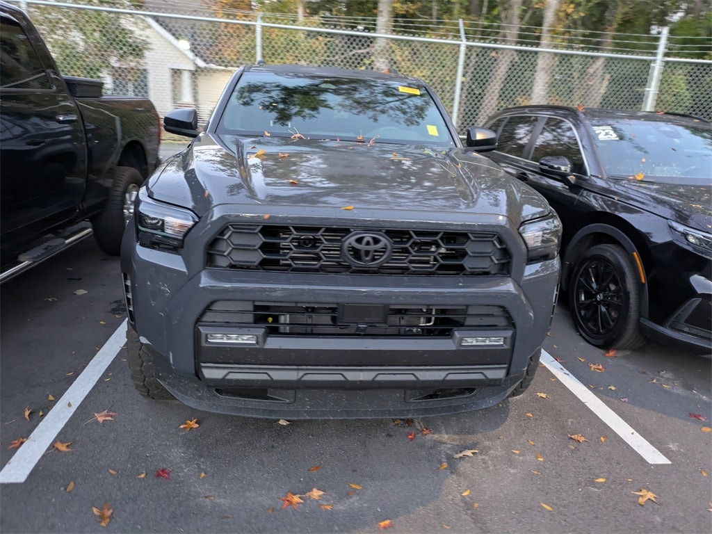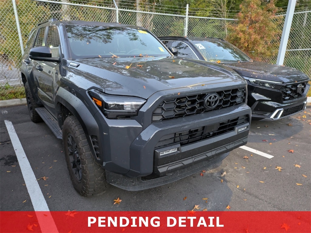 - Black honeycomb-style grille, mirror caps, door handles, and overfenders color-keyed rear spoiler black 'TRD OFF ROAD' and '4RUNNER' badges